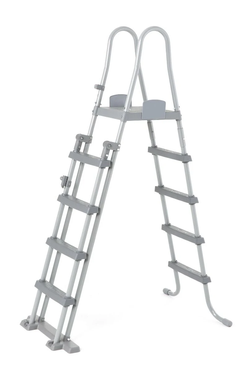 L’échelle avec 4 marches a un cadre solide en métal inoxydable. Les marches antidérapantes robustes en plastique sont fermement attachées au cadre, permettant à chacun d’entrer et de sortir de la piscine en toute sécurité. En plus, l’échelle a une plateforme protectrice et 2 poignées solides. Les marches à l’extérieur de l’échelle peuvent être relevées pour empêcher que l’échelle est utilisée par des enfants, afin que les accidents puissent être facilement évités.