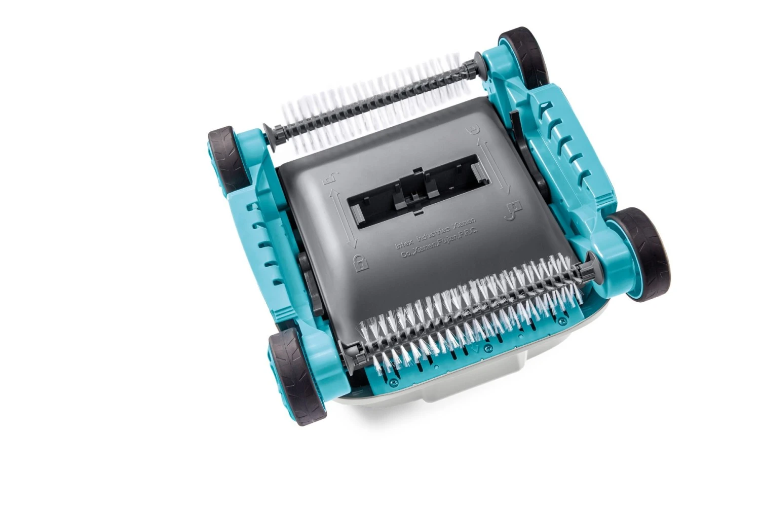 Grâce au mouvement rapide des brosses doublement rotatives, le robot recueille la saleté la plus persistante, des feuilles et des insectes qui se trouvent sur le fond, les aspire automatiquement et assure un nettoyage en profondeur de la surface.