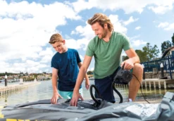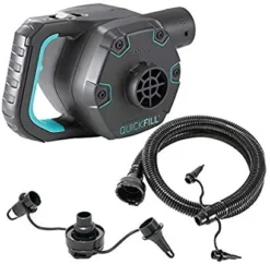 La pompe dispose d’une protection thermique incorporée pour plus de sécurité et est livrée avec 3 pièces d’embout pour différents types de valves de produits gonflables.