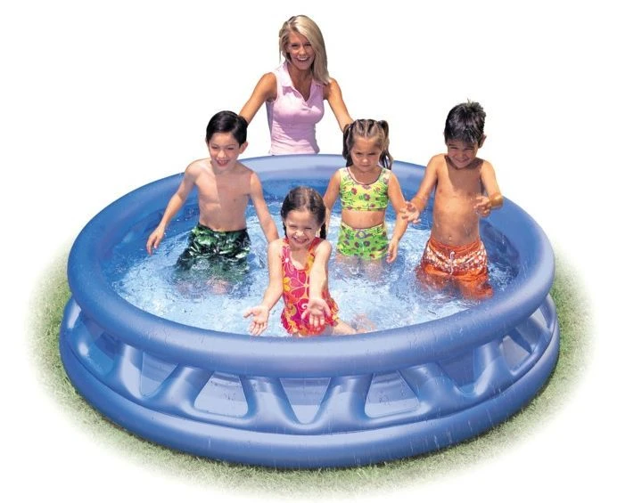 Opblaasbaar kinderzwembad met 3 ringen en gemakkelijk leegloopventiel. Het zwembad wordt geleverd met een reparatiesetje.