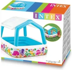 La piscine a un toit ouvrant amovible, vous pouvez donc profiter de jouer dans l’eau sans vous brûler.