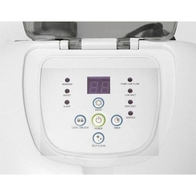 - Alarme sonore et diagnostic: niveau de sel trop bas ou trop élevé, circulation d’eau.